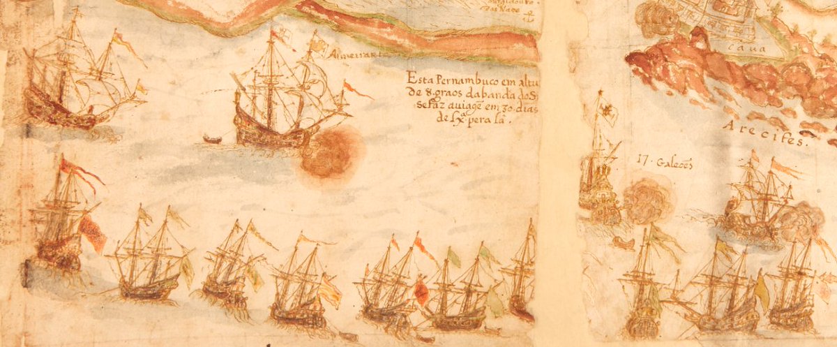 Esse mapa do fim do século 16 mostra, na parte de cima, as "terras de engenhos e fazendas". O açúcar descia até o Porto - e de lá, seguia pro mundo. +