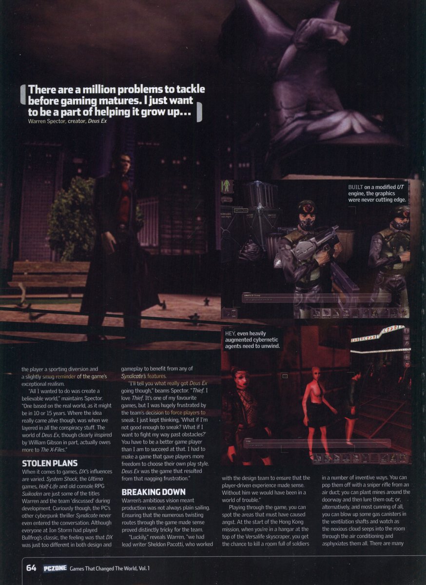 Which is why I always mention that Deus Ex was made almost as a direct rebuttal to Thief. Without its unerring focus on Stealth, the idea to include Combat and RPG elements and call it 'Deus Ex' never happens.