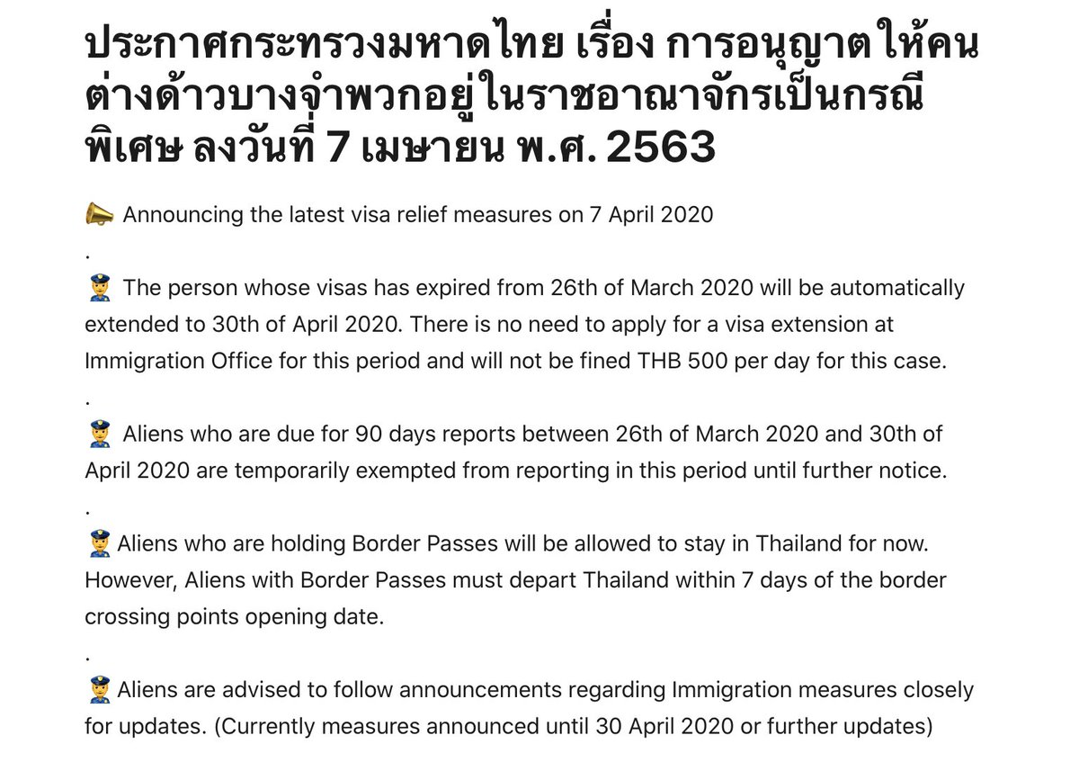 If the Emergency Decree is extended, then everyone gets automatic extension to 30 May. No need to do anything. No need to go to Immigration [4/6]