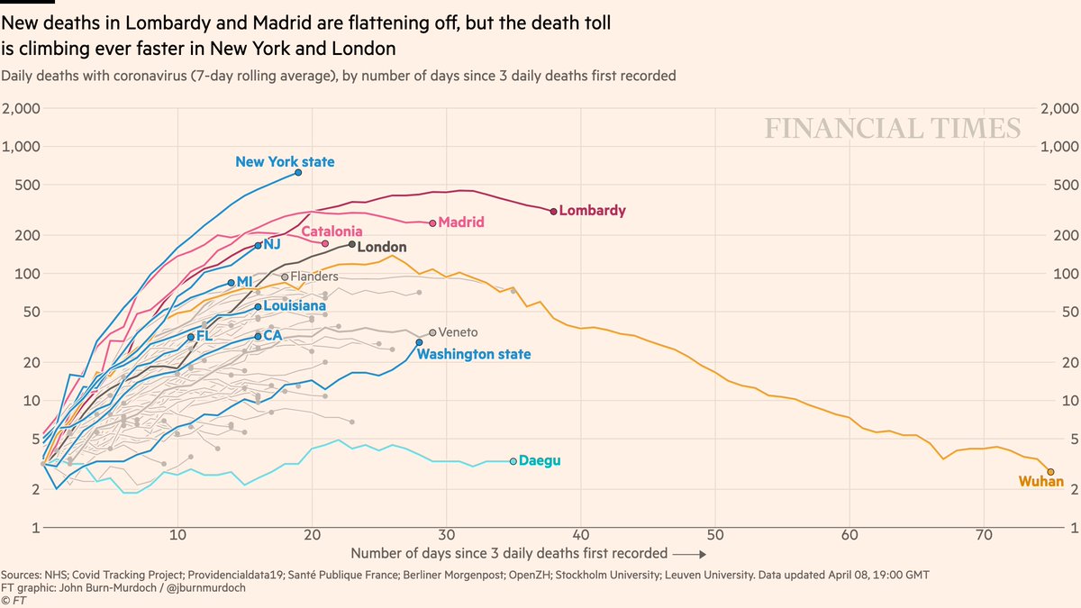 As I've warned, our daily death toll will keep rising until ~2 weeks AFTER we #FlattenTheCurve of new #coronavirus cases. Data continue to suggest that *may* already be happening (thread).🙏🏼