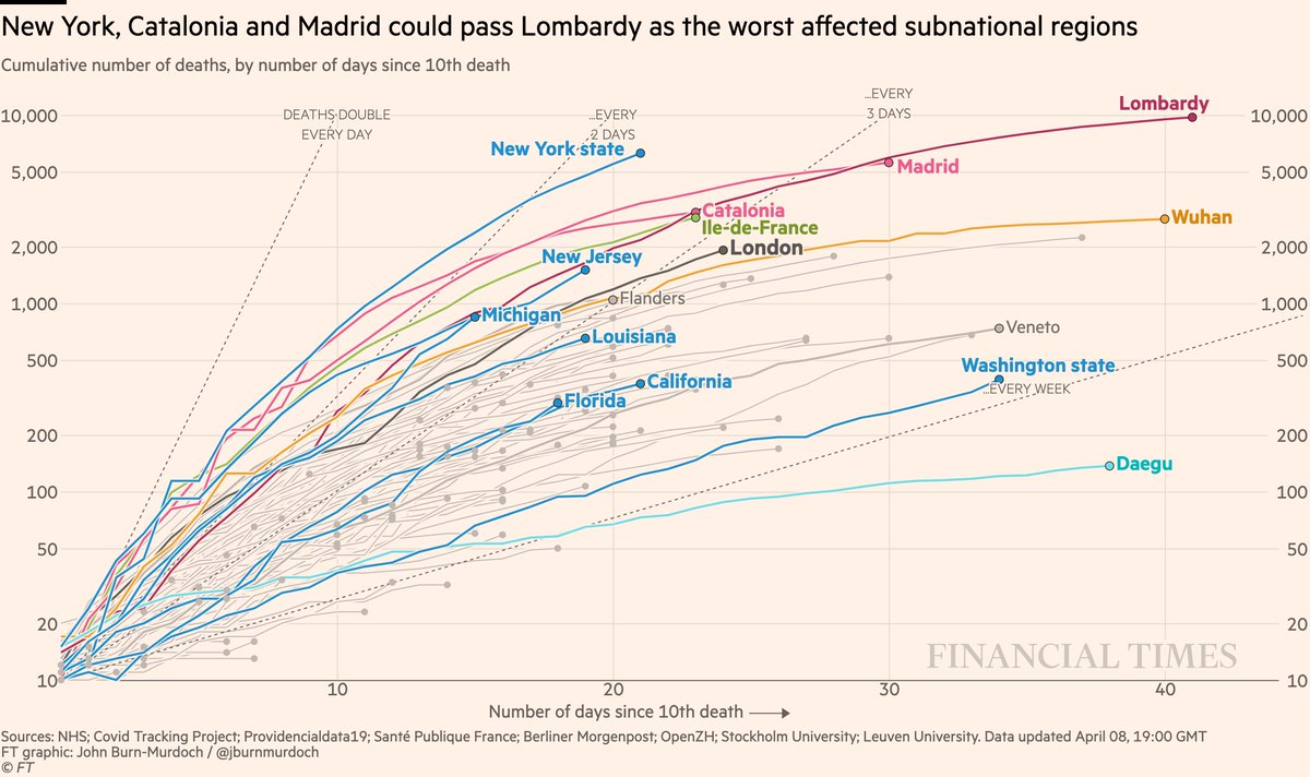 Deaths from #coronavirus in NJ and MI also continue to soar, followed by LA, CA, and FL.