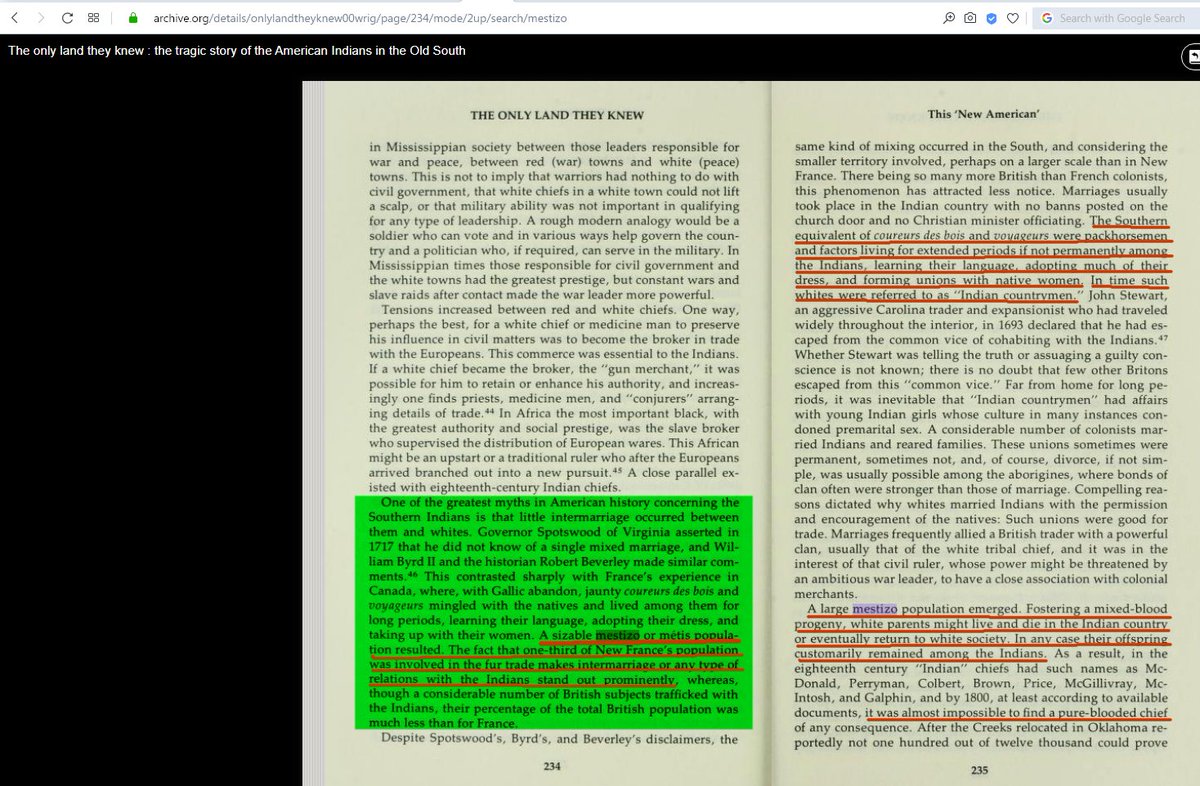 The only land they knew-the tragic story of the American Indians in the Old South-by Wright, J. Leitch 1981- A sizable mestizo or metis population resulted-The fact that one third of New Frances population was involved in the fur trade makes intermarriage #Metis #EasternMetis