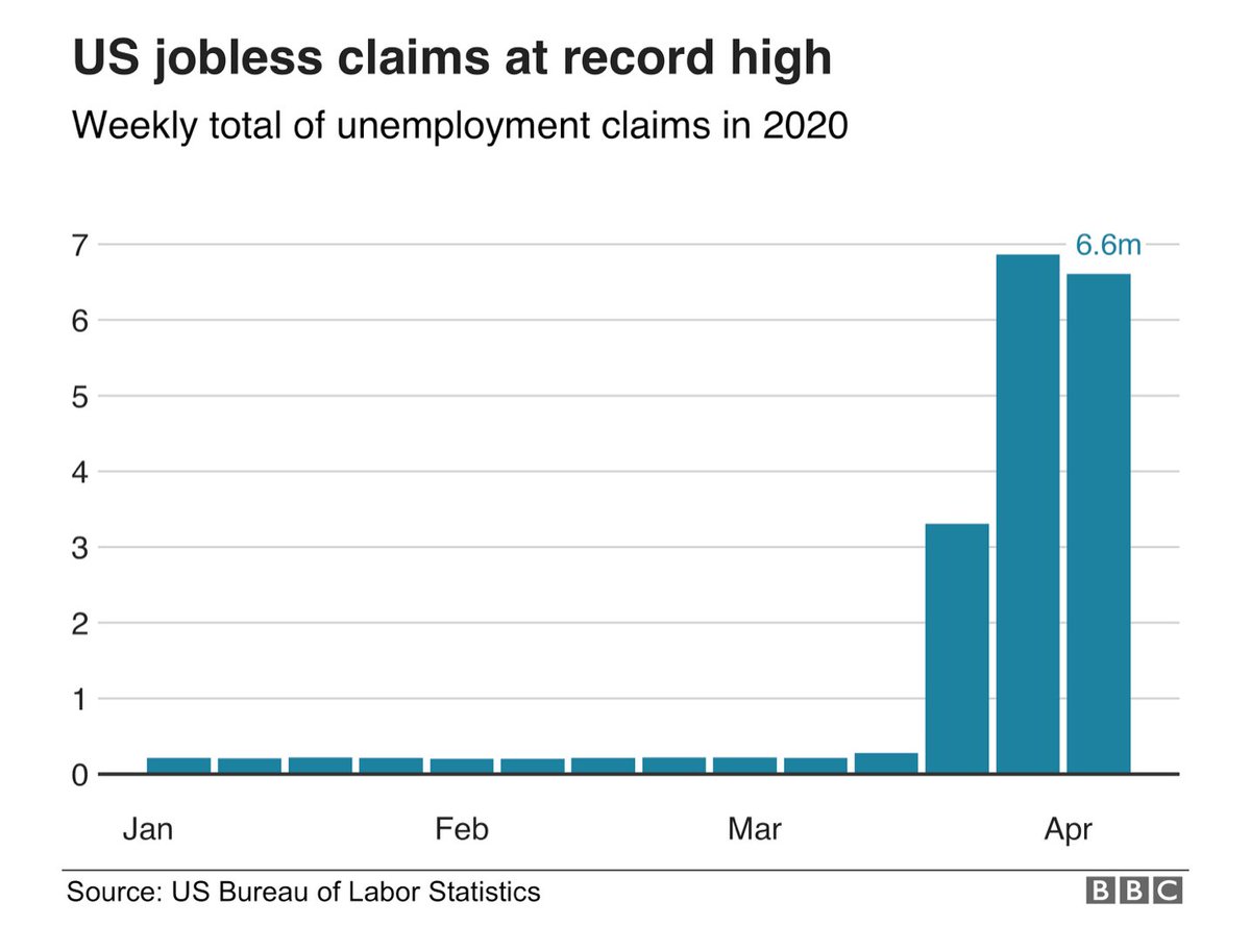 Avg monthly income in the US after tax is around $3 - 5K. If 15% to 20% of the 130m American workers are out of work for three months that's a big smoking hole in the U.S economy. If real estate and business are crippled, debt is not going to help much except load costs. BBC: