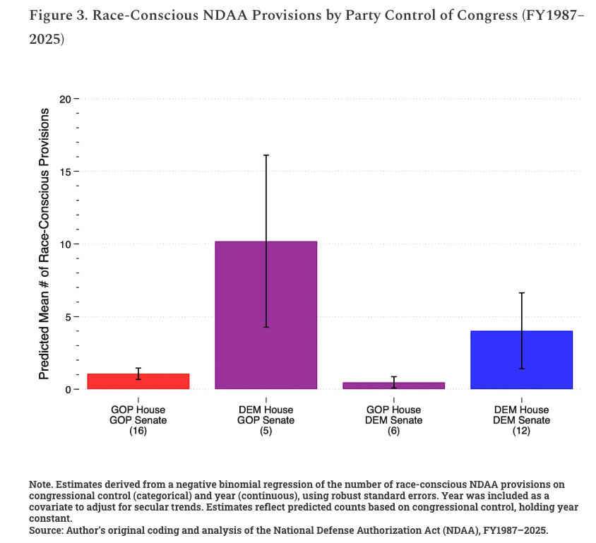 Historically, when Democrats only control the House, an average of just over 10 race-conscious provisions are added to the NDAA per year.