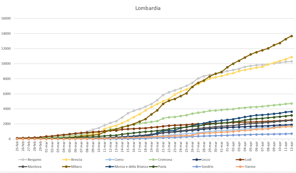 #Lombardia. Oggi +2.5% (ieri +2.8%). Milano +3,1%, Bergamo +0,5%, Brescia +2,5%. Cremona +1,4%, Lecco +1,1%, Lodi +2,9%. Monza +1,8%, Pavia +2,8%, Sondrio +5,3% e Varese +1,8%.
