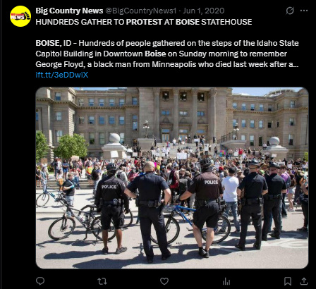 2020.05.31 - Hundreds gather at the Idaho Statehouse to protest the killing of George Floyd, marking the start of widespread BLM demonstrations in Boise. Armed counterprotesters appear at the rally.