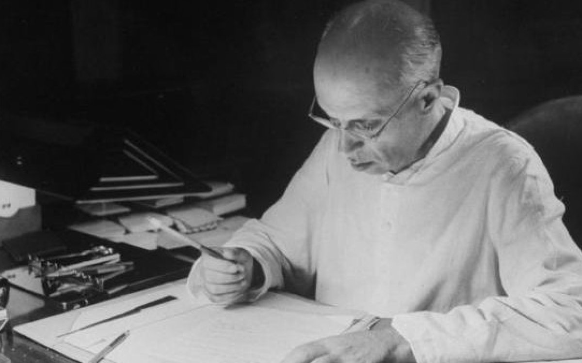 (Nehru writing letter)