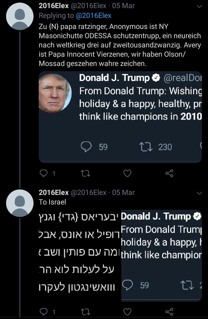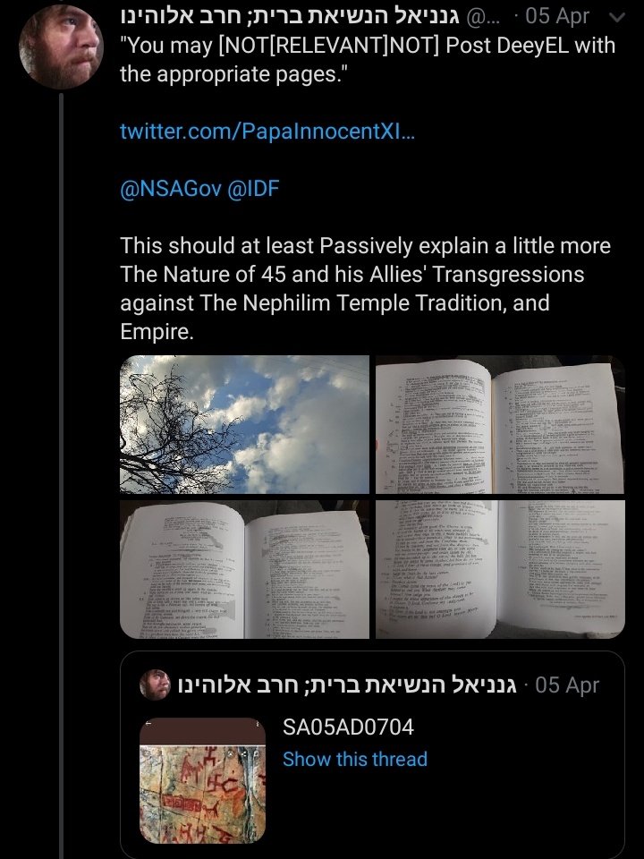 @IDF [patented and patched Liars] @vaticanlibrary [AKA 'ate so much Fruit of The Tree, Hem had to do Nazism/ODESSA with @CIA to Steal Rememberance of Religion's Meaning'] @goarch [re: Cristos PanOPaterosPedos, OH] @RoyalFamily [royal heir farce]