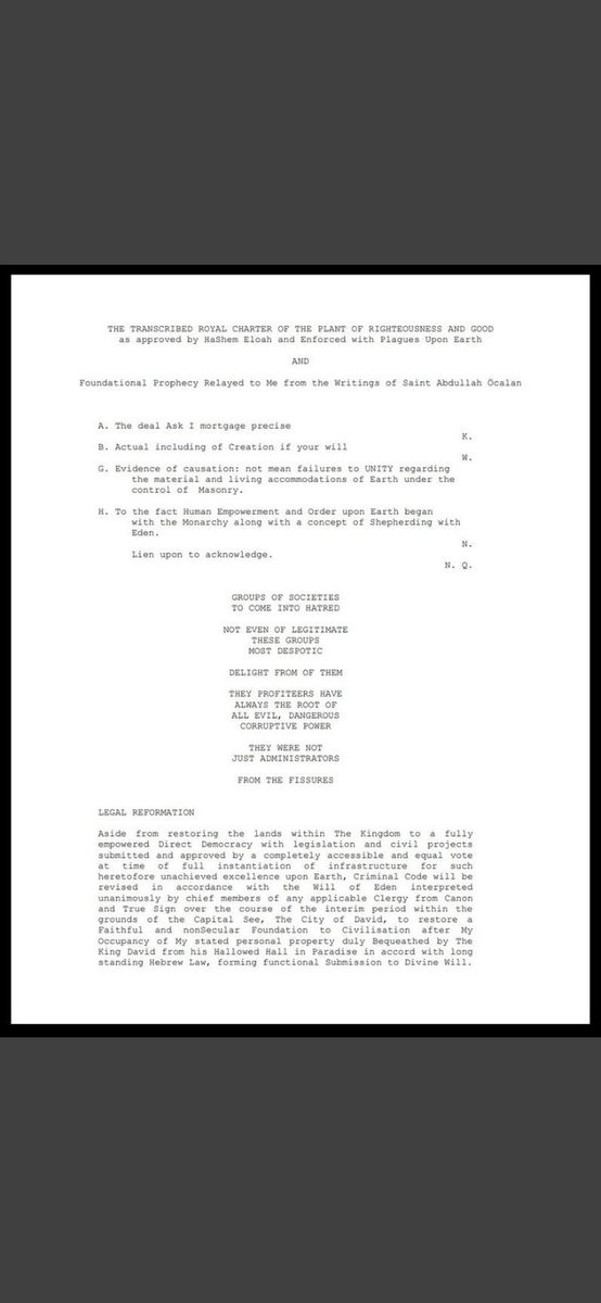 Divine Right Mandate of The Restored Kingdom of The Plant of Righteousness and Good.