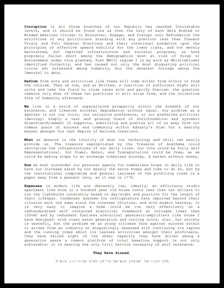 In your bold pursuit of Zero Responsibility Policy you have made even preparing and printing a simple evidentiary document impossible by your total Abuse of legal and surveillance framework in Atrocious Abomination. We Have No Recourse.