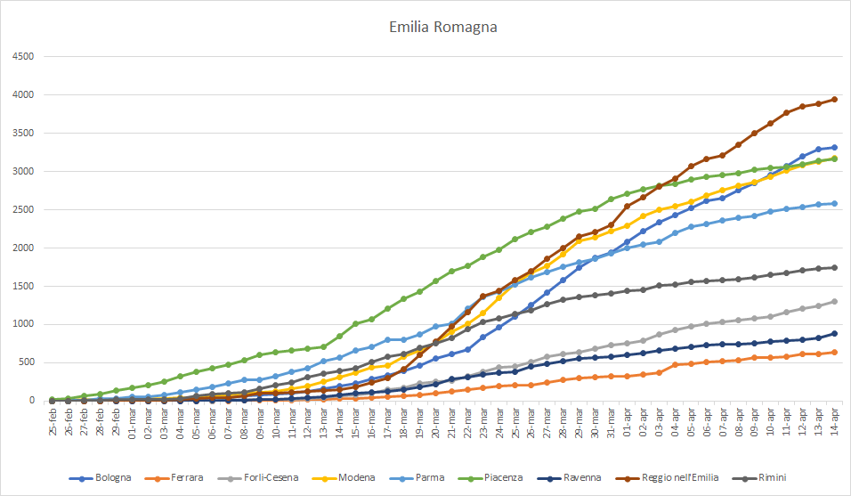 #EmiliaRomagna. Oggi +1.5% (ieri +1.7%). Reggio Emilia +1,5%, Bologna e Piacenza +0,9%, Rimini +0,8%. Parma +0,3%, Modena +1,5%, Ravenna +6,4%, Ferrara +2,8% e Forlì-Cesena +4,5%.