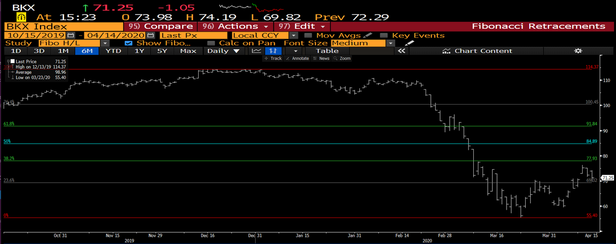 And the bank stock index was DOWN today and not only is it down the most, it cannot even take out its 38.2% retracement.