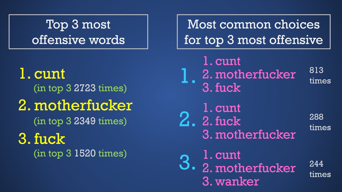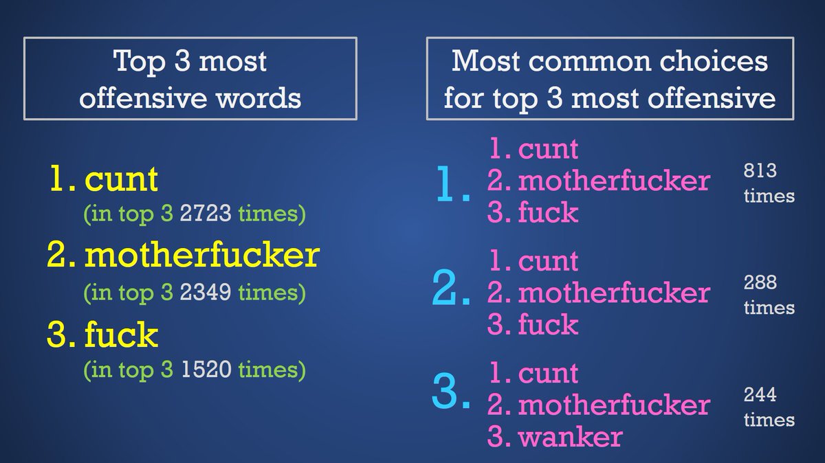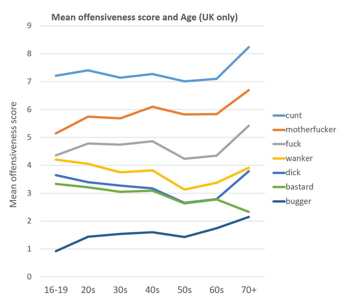 In March 2020, I launched an online survey looking at the offensiveness of certain words. I've posted a more detailed version of this thread here: swearing.info.