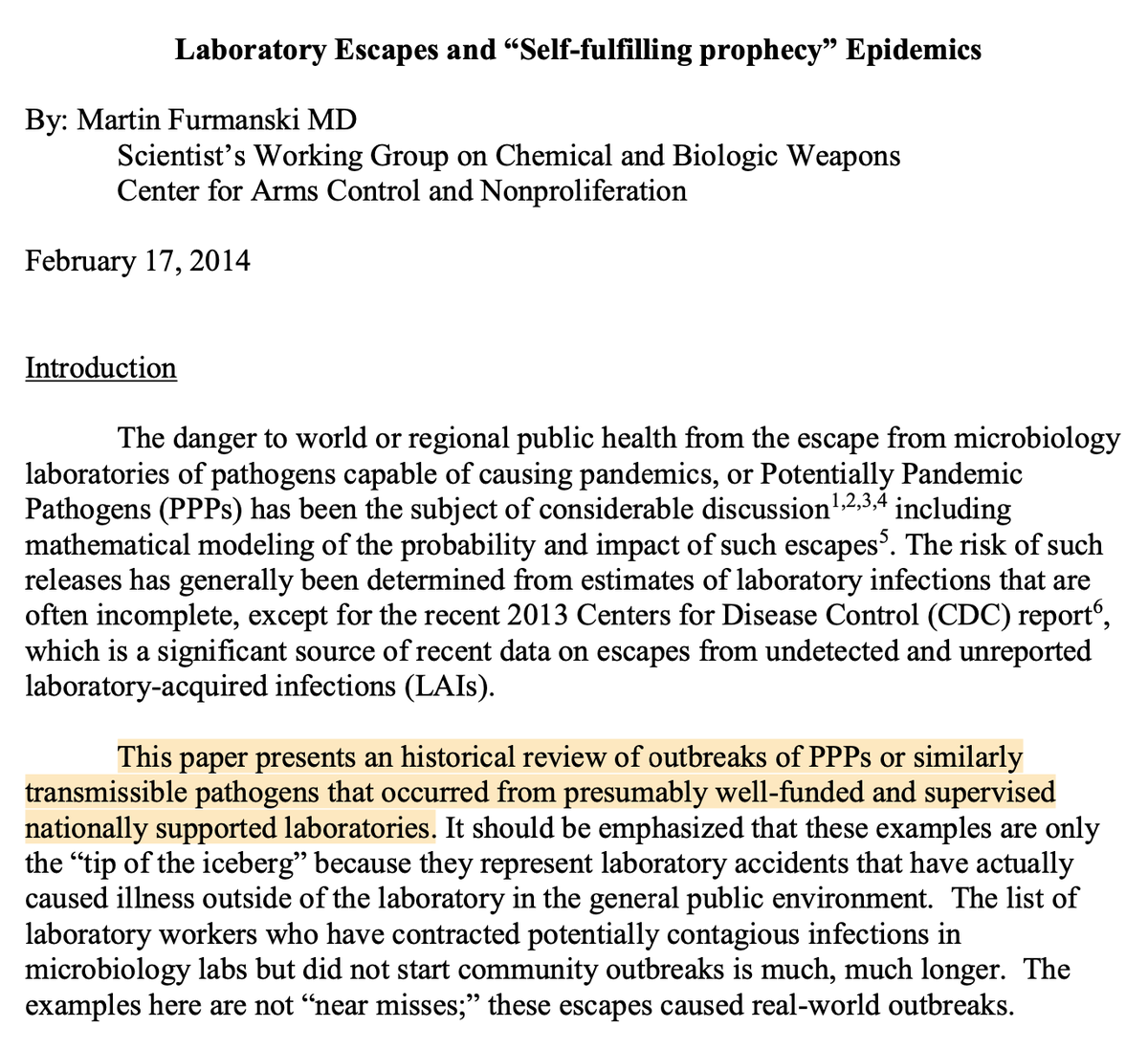 First, Black Plague & Spanish Flu arose before modern labs. Nature is deadly. Labs aren't a necessary condition for a pandemic.