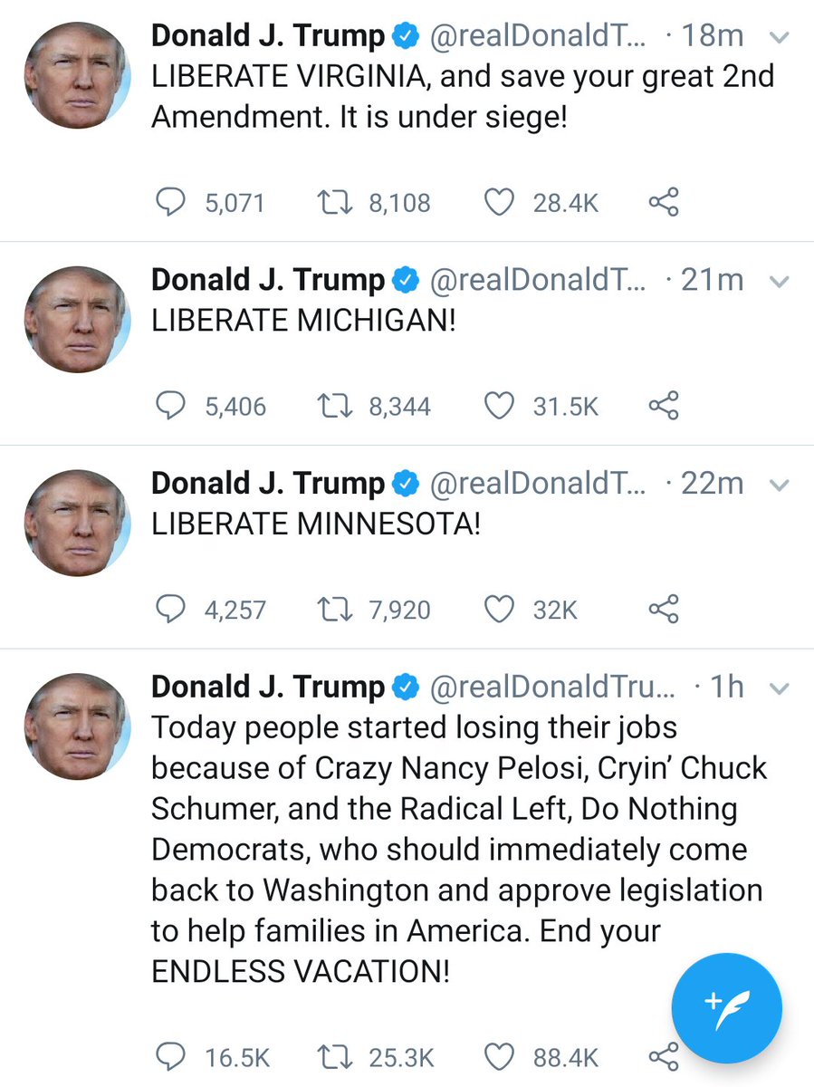 1. Trump pide que "LIBEREN" del confinamiento a tres estados.