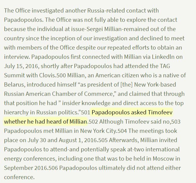 Looks like PapaD met with Millian at least 4 times between July 30 and the end of August. Or his dates and the Mueller report's date don't line up.