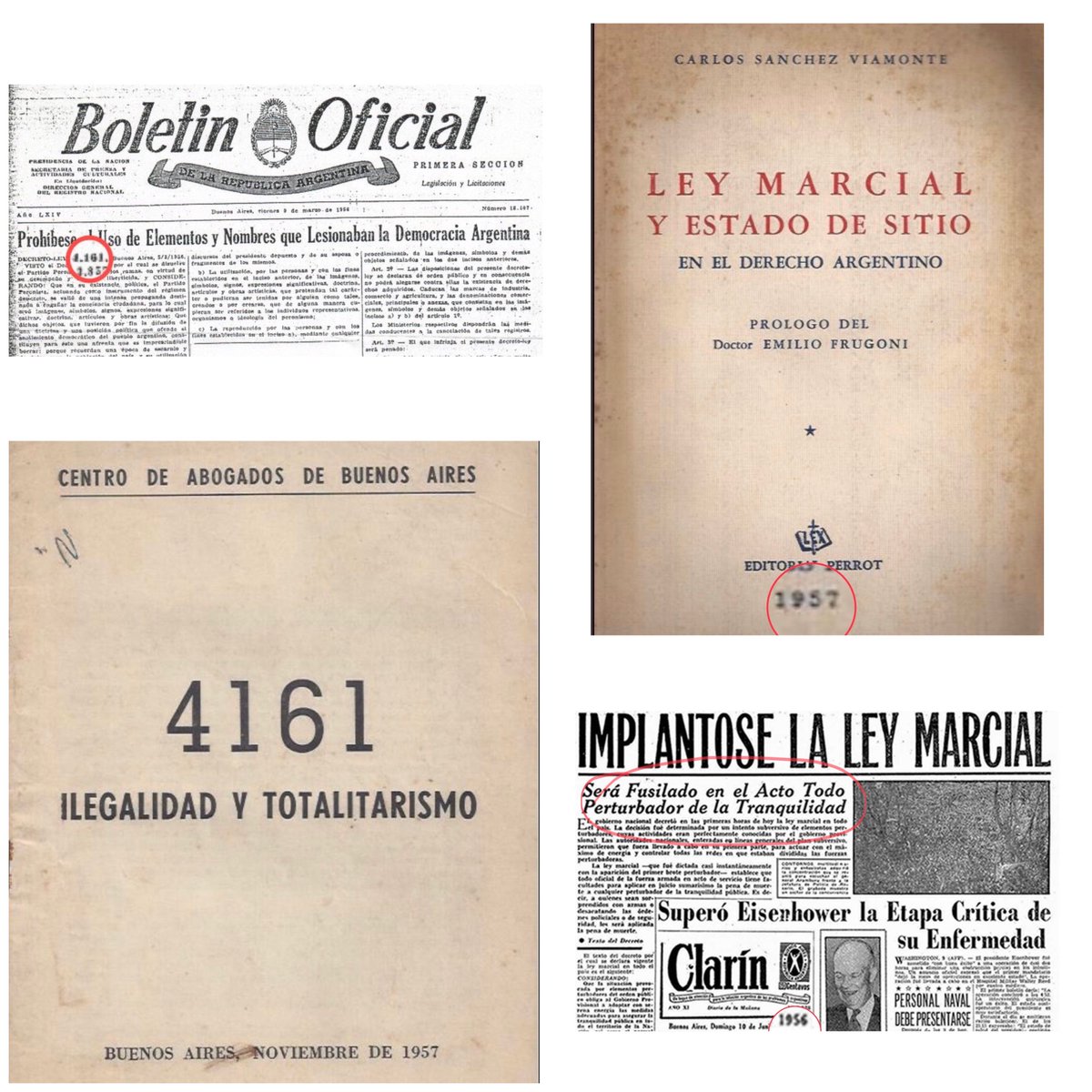 Tambien se publicaban libros de derecho sobre que legitimaran los actos de los golpistas: en un caso la proscripción de 1955 y en otro la ley marcial que instauraron en 1956.