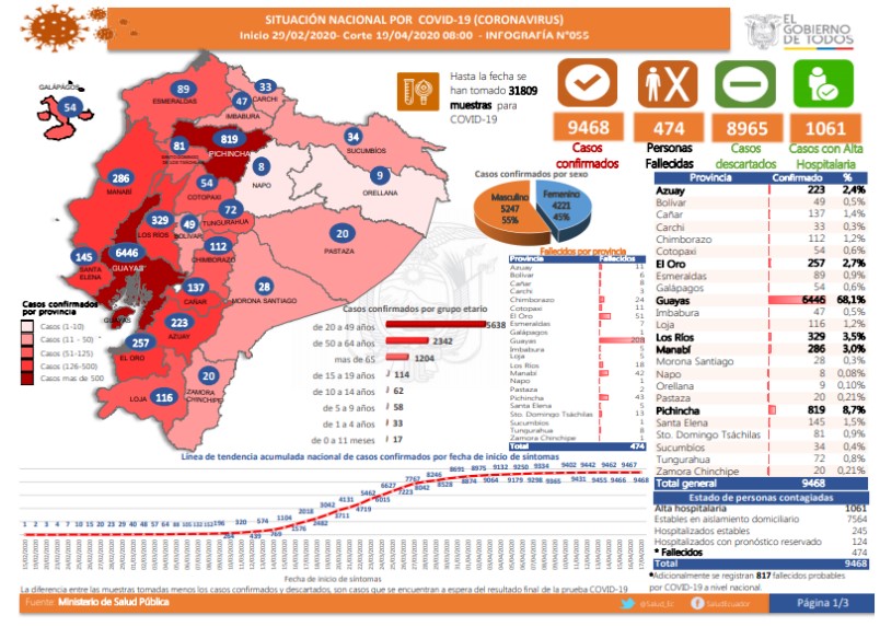 La forma de la curva en Ecuador depende de las muestras analizadas, más no del número de enfermos en el país.