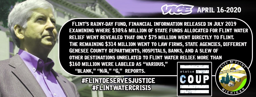 6) Snyder dispersed just $75 million of $389.6 million meant for #FlintWaterCrisis relief to city govt. Rest went to donors and non water-relief destinations--including a powerful private foundation's financial allies. Over $160 million went to "G", "Various," "Blank," and "N/A."