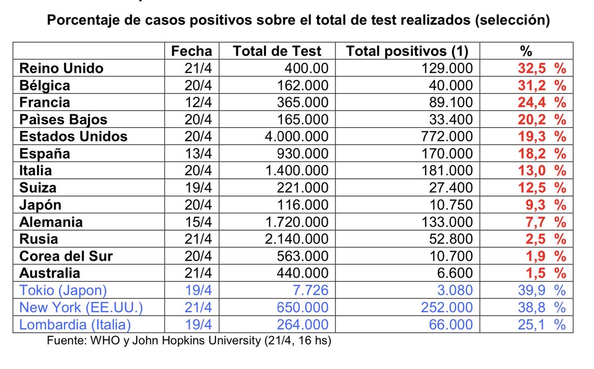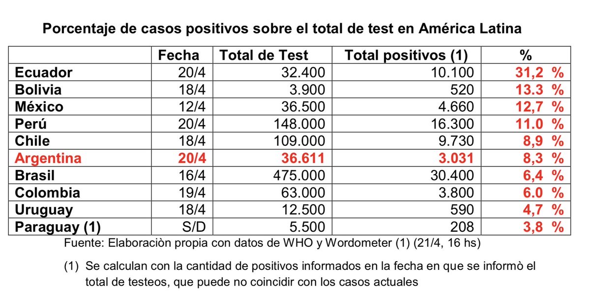 2. El % de positivos es de 8,3% (inferior a lo sugerido por la OMS y similar al de Chile que realizó muchos más test)
