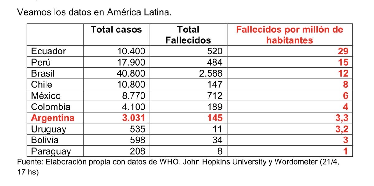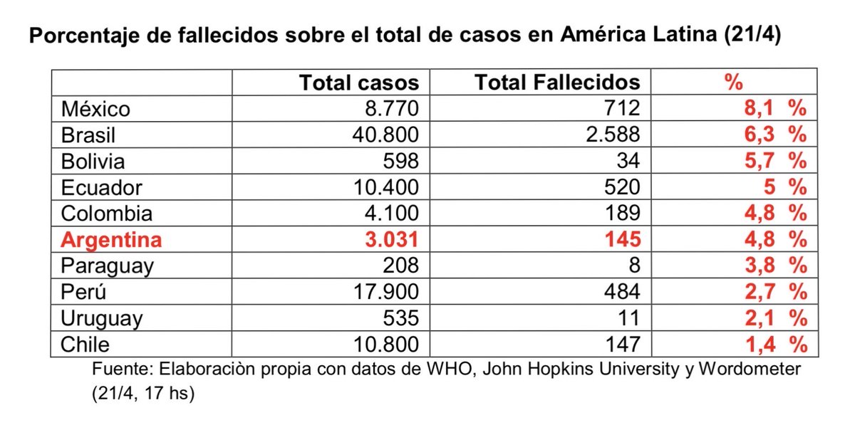 5. La tasa de letalidad, que en el mundo es de casi 7% aquí es de 4,8%
