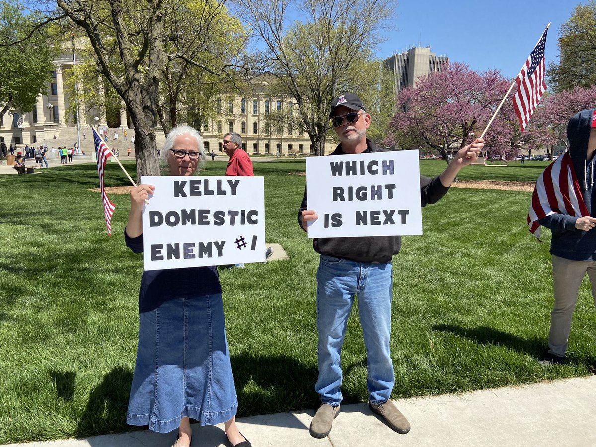 She said @GovLauraKelly has trampled her rights, and heard by the protest through Facebook.