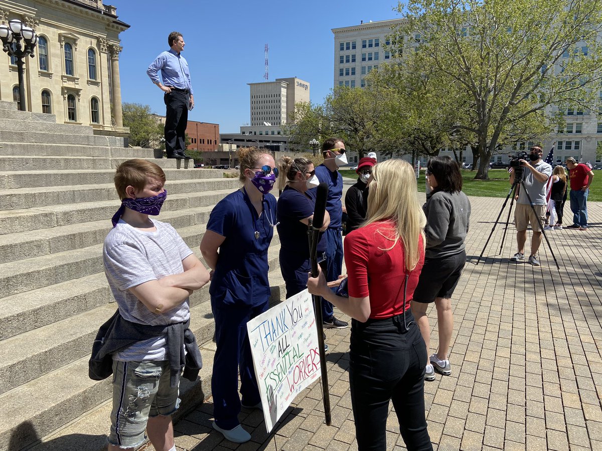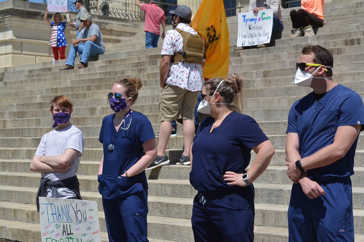 Lawrence nurse Zane White, left, told me they wanted to show support for those in health care and encourage people to stay safe from the virus.