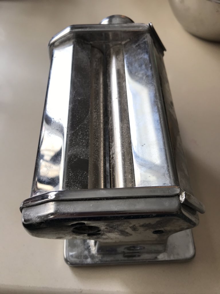 רואים שהבצק שלי קצת פצוע? זה כי לא ניקיתי טוב את המכונה בשימוש הקודם 🤷🏻♀️ אסור לשטוף מכונות פסטה. מנקים אותן ״יבש״. זה קורה.