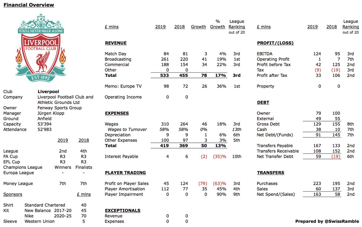 It also shows key standing data, sporting performance and details of the main sponsorship deals.