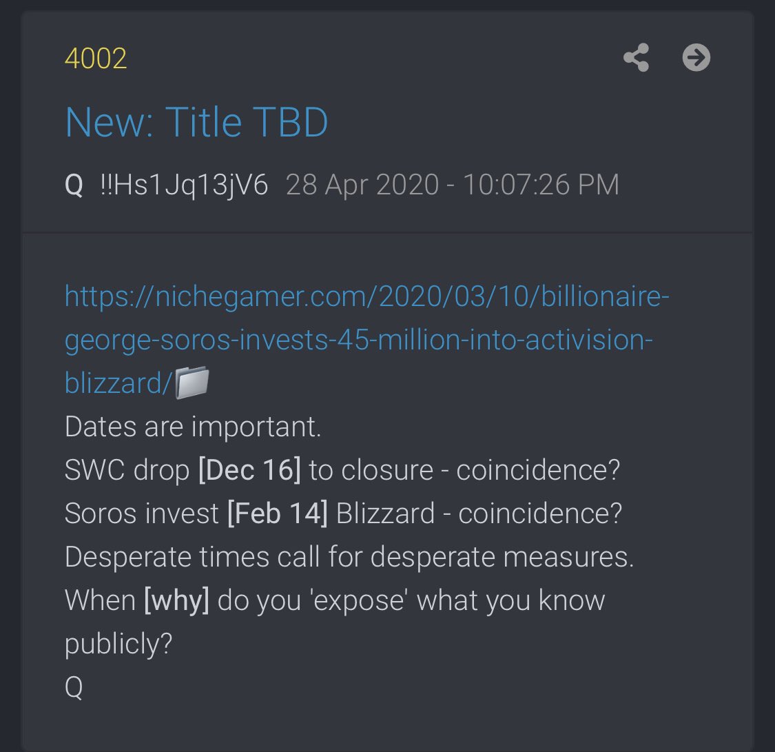 Soros invest [Feb 14] Blizzard - coincidence?