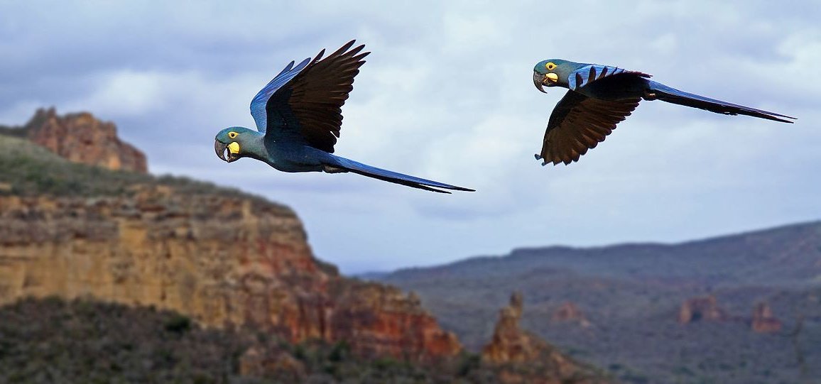 Em homenagem a ele, vou contar um pouquinho pra vocês sobre a Arara-azul-de lear, ave endêmica da Caatinga e que está ameaçada de extinção!