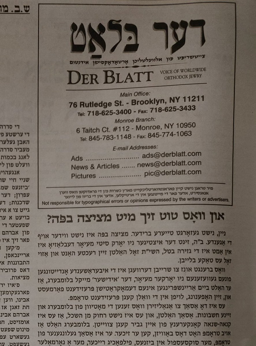 Soon after, Der Blatt had a piece calming those who are concerned about the "Jewish" @MikeBloomberg joining the @TheDemocrats presidential race, saying "as long as @NYCMayor@BilldeBlasio is mayor, there's nothing to worry about interference with Metzitza B'peh."