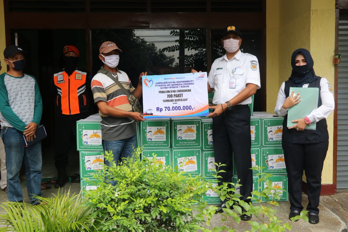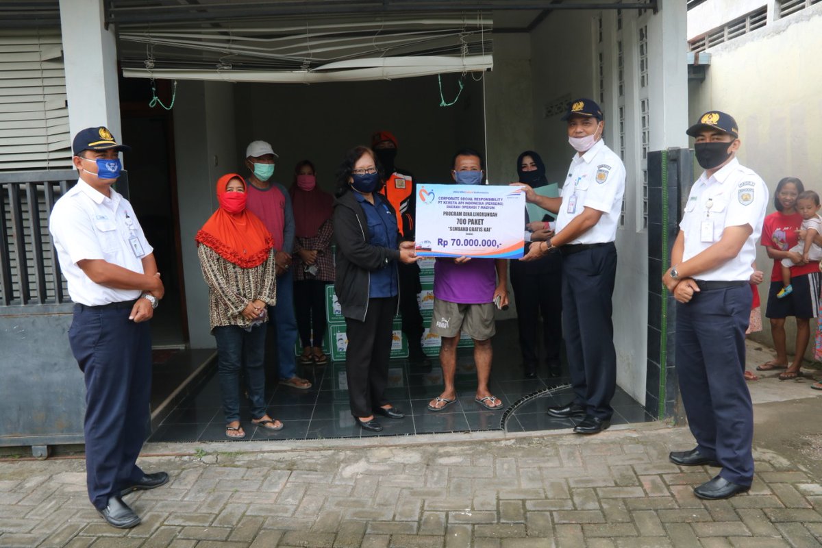 KAI membagikan 10.000 paket sembako dengan total nilai bantuan sebesar Rp 1 Miliar. Masing-masing paket bernilai Rp100 ribu yang berisi beras 5 kg, minyak goreng 1 liter, dan gula pasir 2 kg.