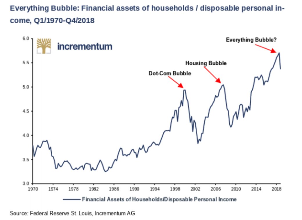 This spirals into a vicious cycle leading to a bubble bursting and a massive deflationary event where the economy starts to de-grows (Think Recession or worse a Depression)