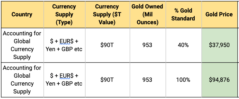 Well you just raise the value of Gold to match the global monetary supply. It's quite simple.