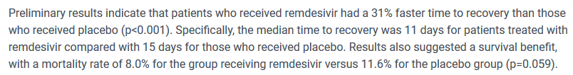 1. I am saying I believe the NIAID trial to be randomized, intention-to-treat