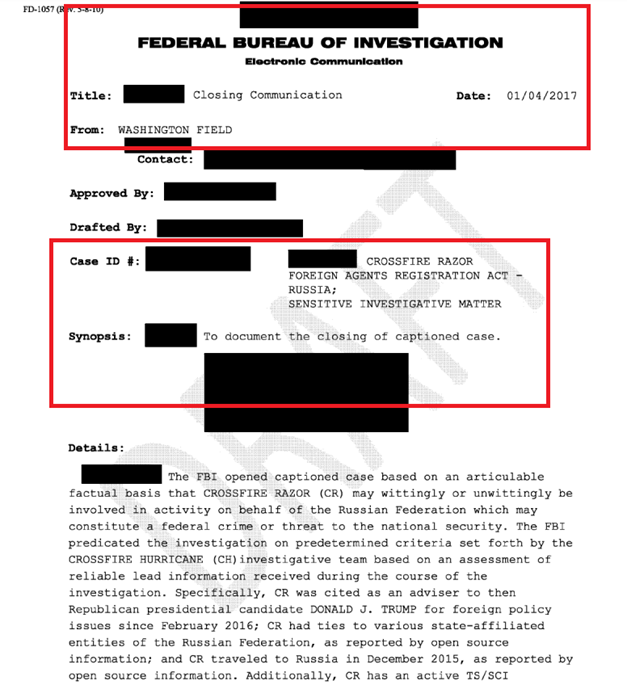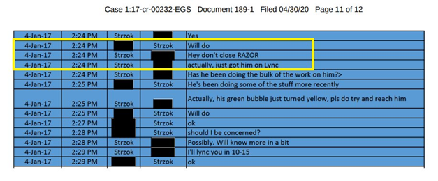 Op 4 januari 2017 FBI Field Office dat er “geen belastende informatie” was tegen Flynn en dat ze besloten Operation Razor te beëindigen.