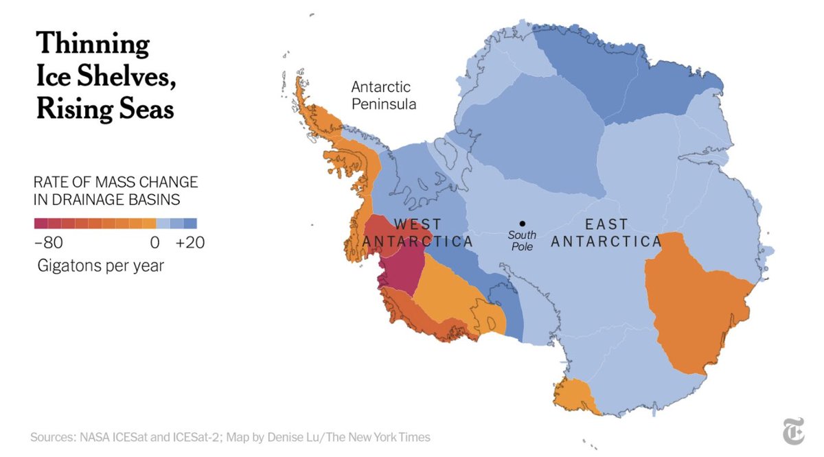 Researchers have known for a long time that Antarctica is gaining more ice in some areas, like parts of East Antarctica, and losing it quickly in others, like in West Antarctica and the Antarctic Peninsula nyti.ms/3f5fAWO
