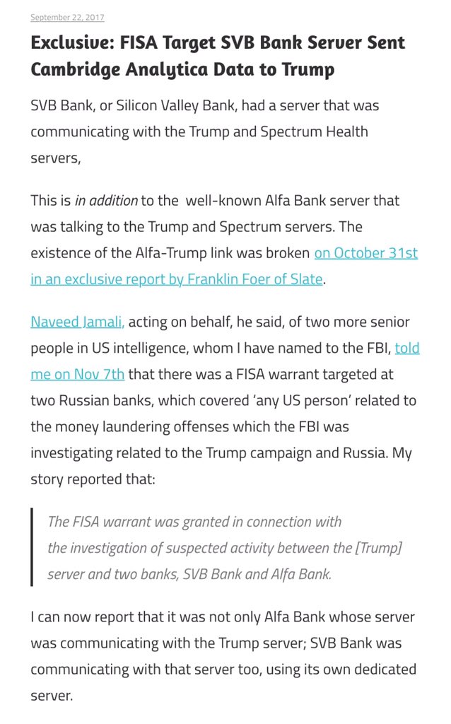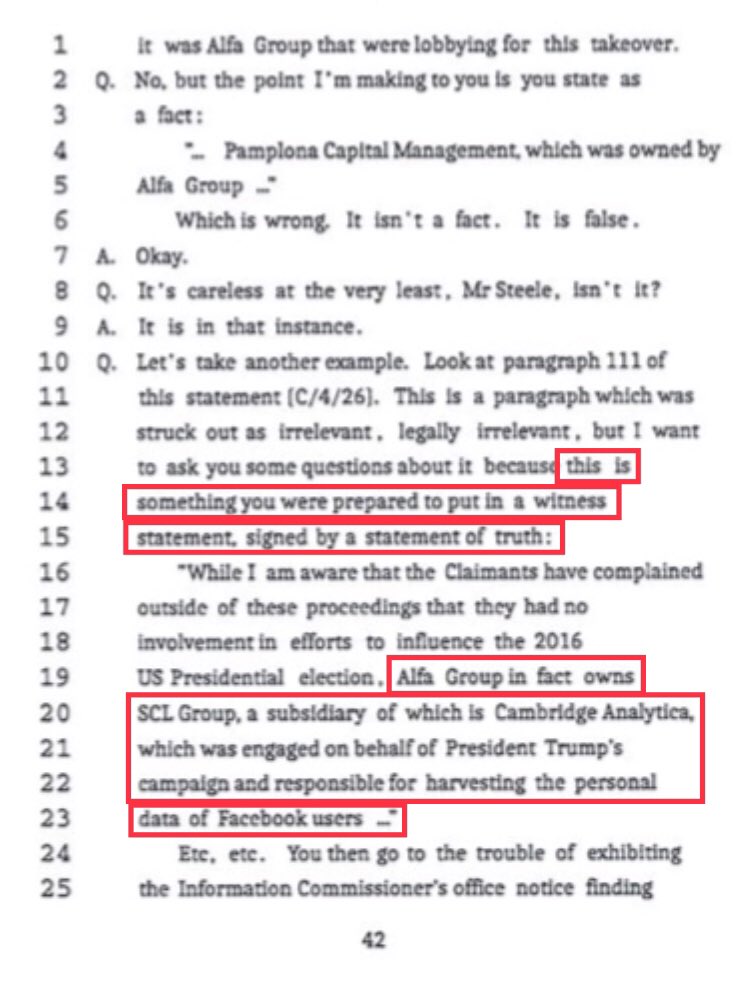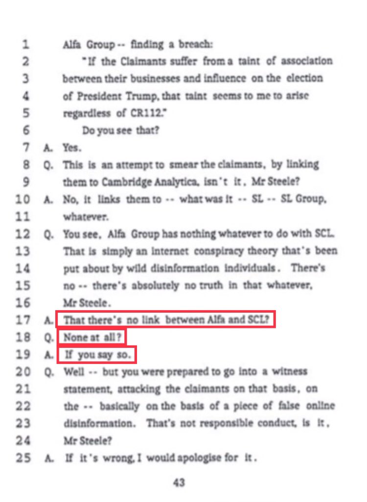 Esq: Mr. Steele, in a sworn statement, you said Alfa Bank owns SCL Group, a subsidiary of which is Cambridge Analytica, who you say assisted in Trump's campaign.