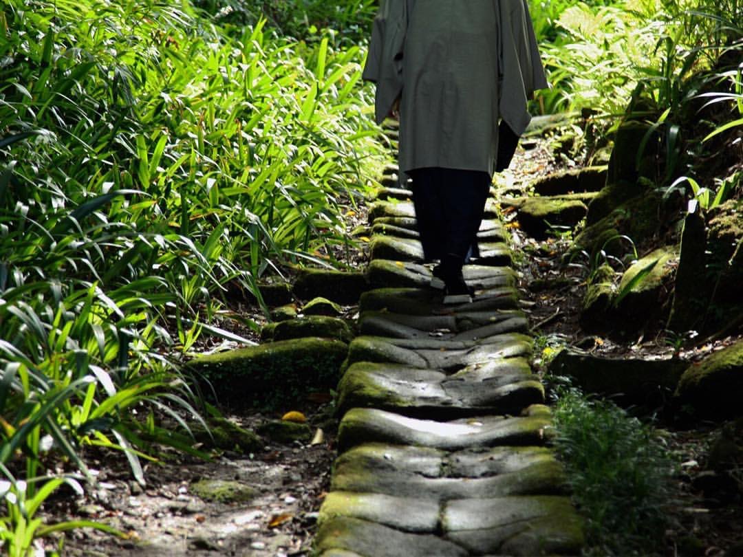 The famous Jouchi Temple (浄智寺) in Kamakura has one of my favorite stairs. The temple itself dates back to 1283 but the original stairs were destroyed in the 1923 earthquake. How to recreate the ancient atmosphere of a worn old stone stair?