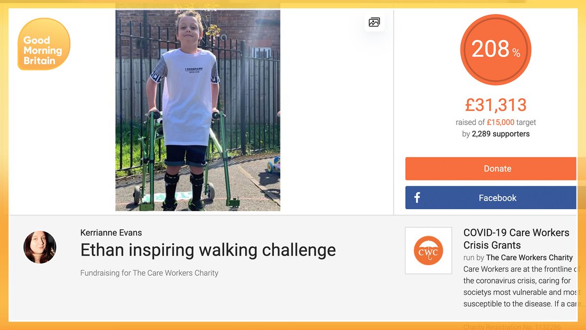 Inspired by @captaintommoore, 9-year-old Ethan Beardow, who has cerebral palsy, is walking 100 laps of his street to pay for funerals of coronavirus victims.