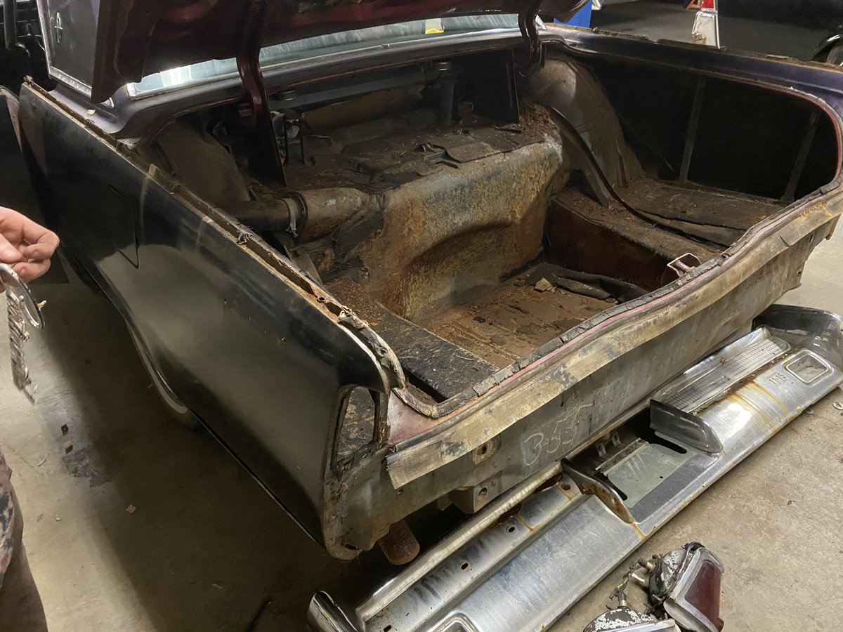 Removed litterally hundreds of pieces of chrome and sent everything off to be redone — like new ($$$). The amount of rust on both cars is quite severe, but knew that going in, and it’ll take a massive amount of metal work to repair.