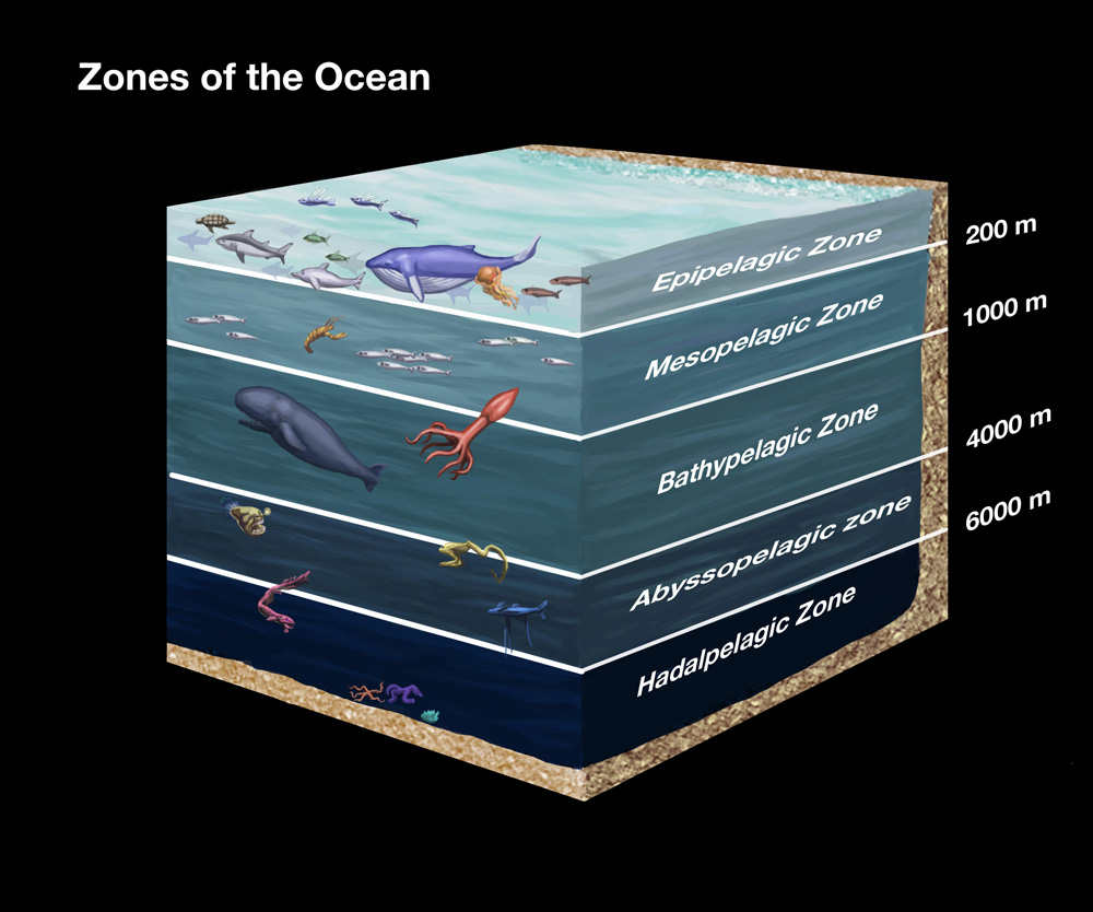 Selain itu, haiwan di zon ini dilengkapi oleh insang yang sangat efisien untuk mengekstrak oksigen yang terkandung di dalam air laut tersebut.