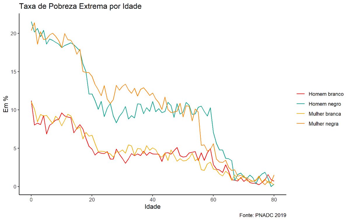 A desigualdade de gênero de pobreza atua contra as mulheres nessa faixa etária, provavelmente por diferenças na participação no mercado de trabalho.