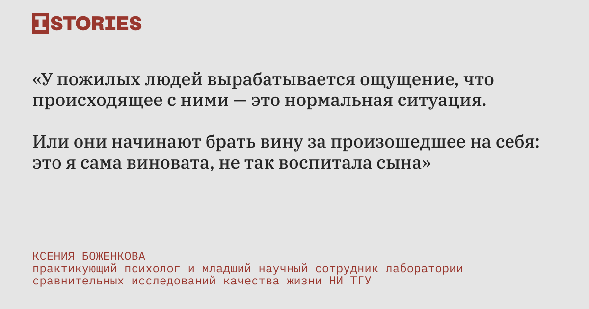 Все случаи, которые мы изучили произошли в обычное время, без карантина. А как теперь пожилым людям обращаться за помощью и звонить в полицию, если обидчик всегда рядом?