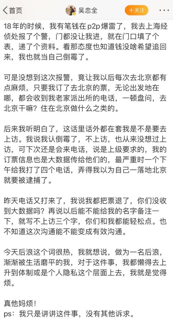 当事人在被铁拳后表示对祖国深深地失望,认为其受到不公待遇源自其没有权势