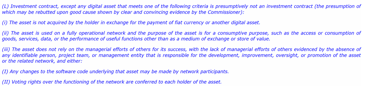 #California AB2510 would alter its state definition of a #security: "#digital#assets that meets one of the following criteria is presumptively not an investment contract; not purchased for fiat/digital asset, used on a fully operational network /1 legiscan.com/CA/text/AB2150…