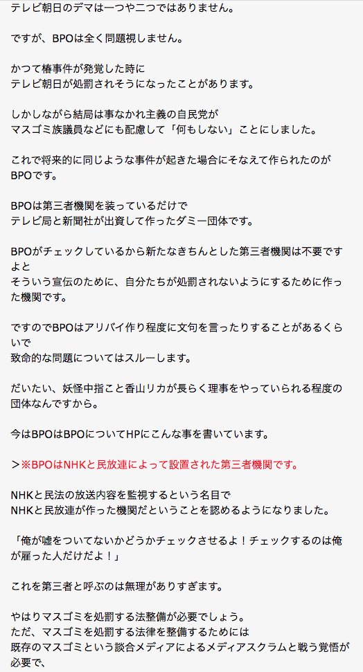 〈やはりマスゴミを処罰する法整備が必要でしょう。ただ、マスゴミを処罰する法律を整備するためには既存のマスゴミという談合メディアによるメディアスクラムと