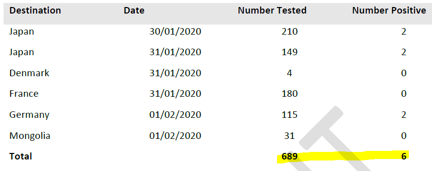 They used the test for active infection (not the test for antibodies, or prior infection) that was used on people being repatriated from Wuhan. This is the PCR test.