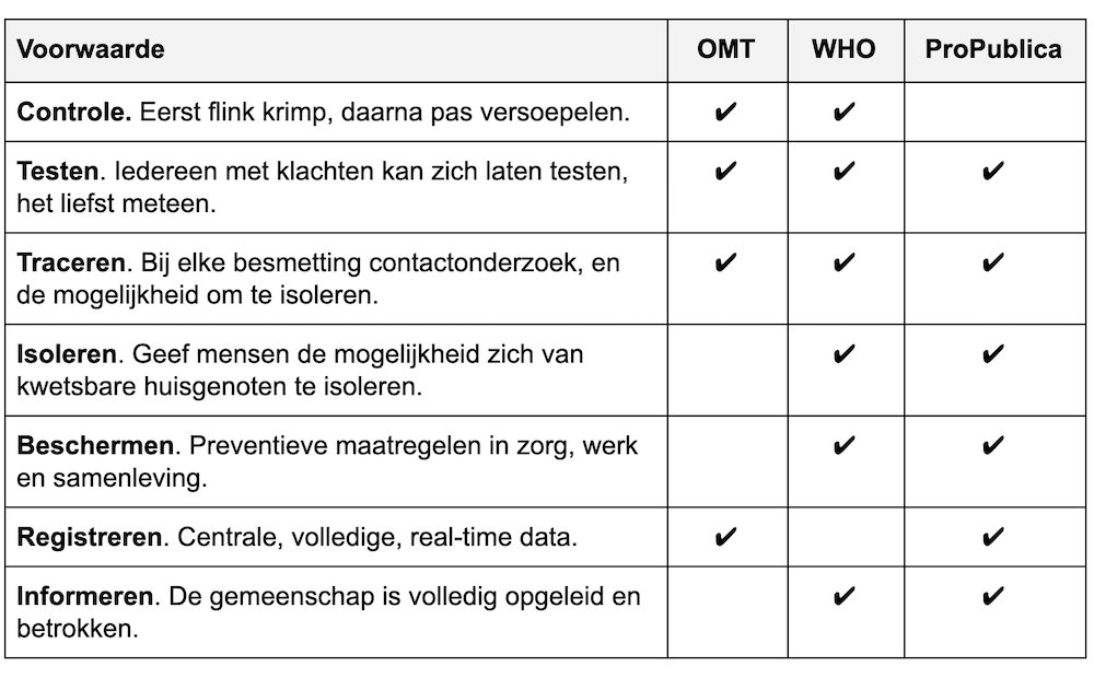 Waarom zijn er geen expliciete criteria voor versoepeling, die dagelijks gecommuniceerd worden en door iedereen verifieerbaar zijn?